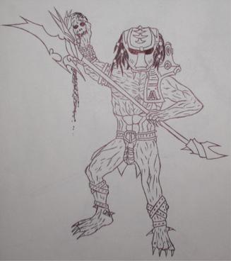 Here is a Predator I drew, It is based off of the 5" Warrior Predator toy.